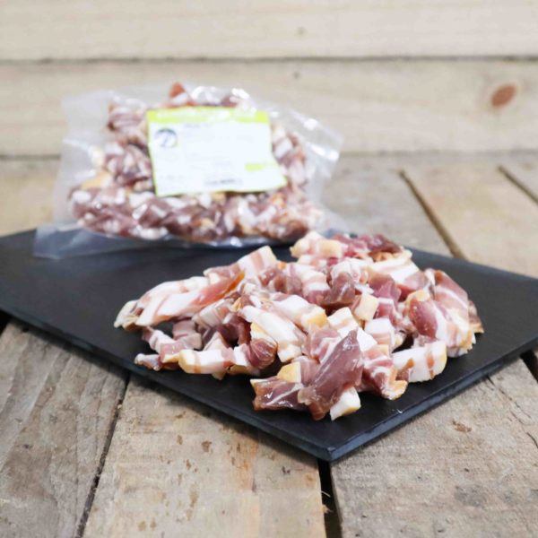 Ingrédients : Poitrine de porc, sel de Guérande. Fumé aux copeaux de hêtre non traités.