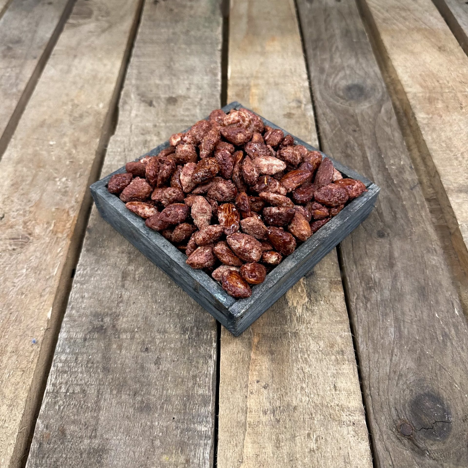 Amandes toastées artisanalement et enrobées de sucre caramélisé pour de délicieuses pralines bien craquantes !