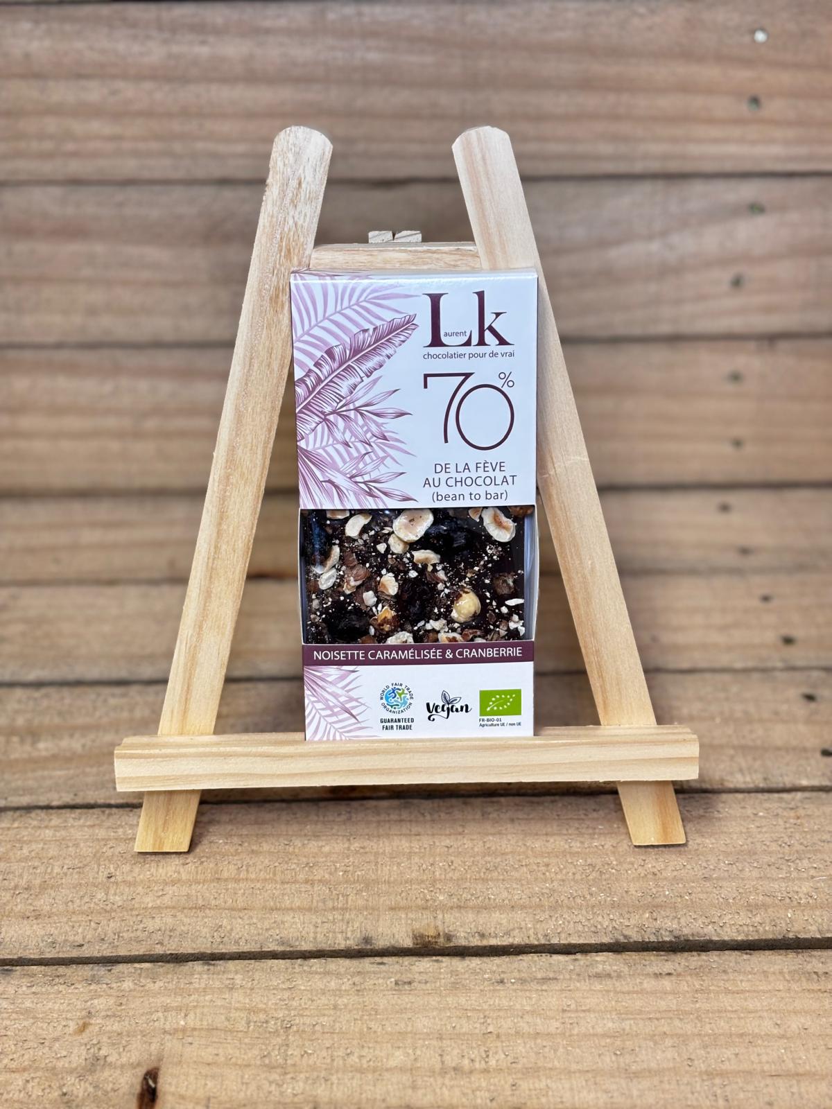 Chocolat noir 70% noisettes caramélisées et cranberries