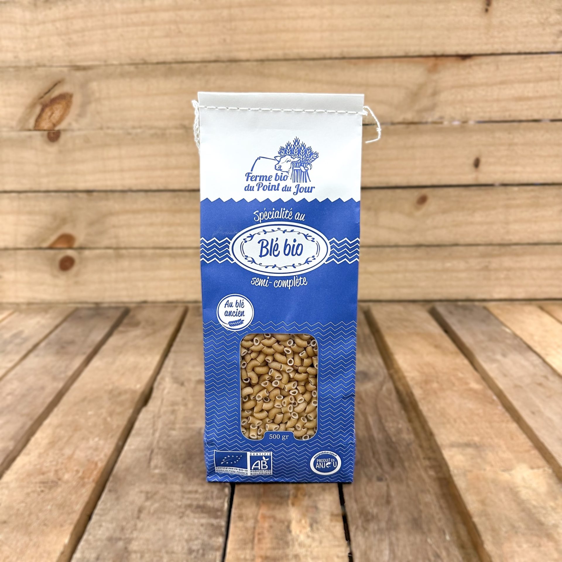 Un paquet contient 500g de pâtes, soit environ 5 portions. Le sachet est entièrement recyclable.