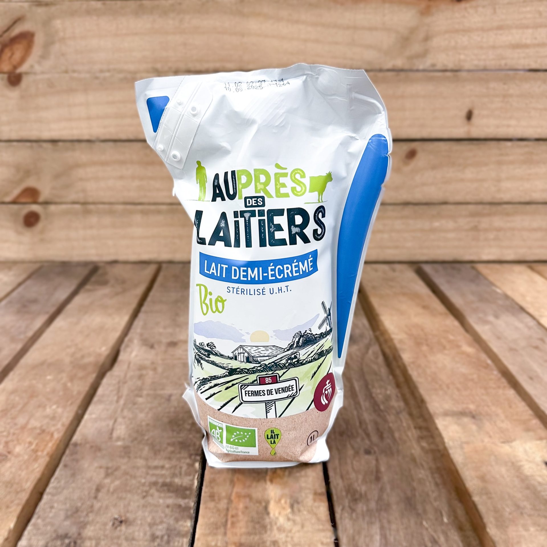 La poche contenant le litre de lait "Auprès des Laitiers" est conçue pour être à la fois pratique et respectueuse de l’environnement. Voici comment l'utiliser: