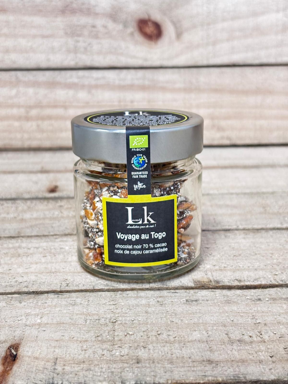 Ingrédients : fève de cacao*, noix de cajou*, sucre de canne*