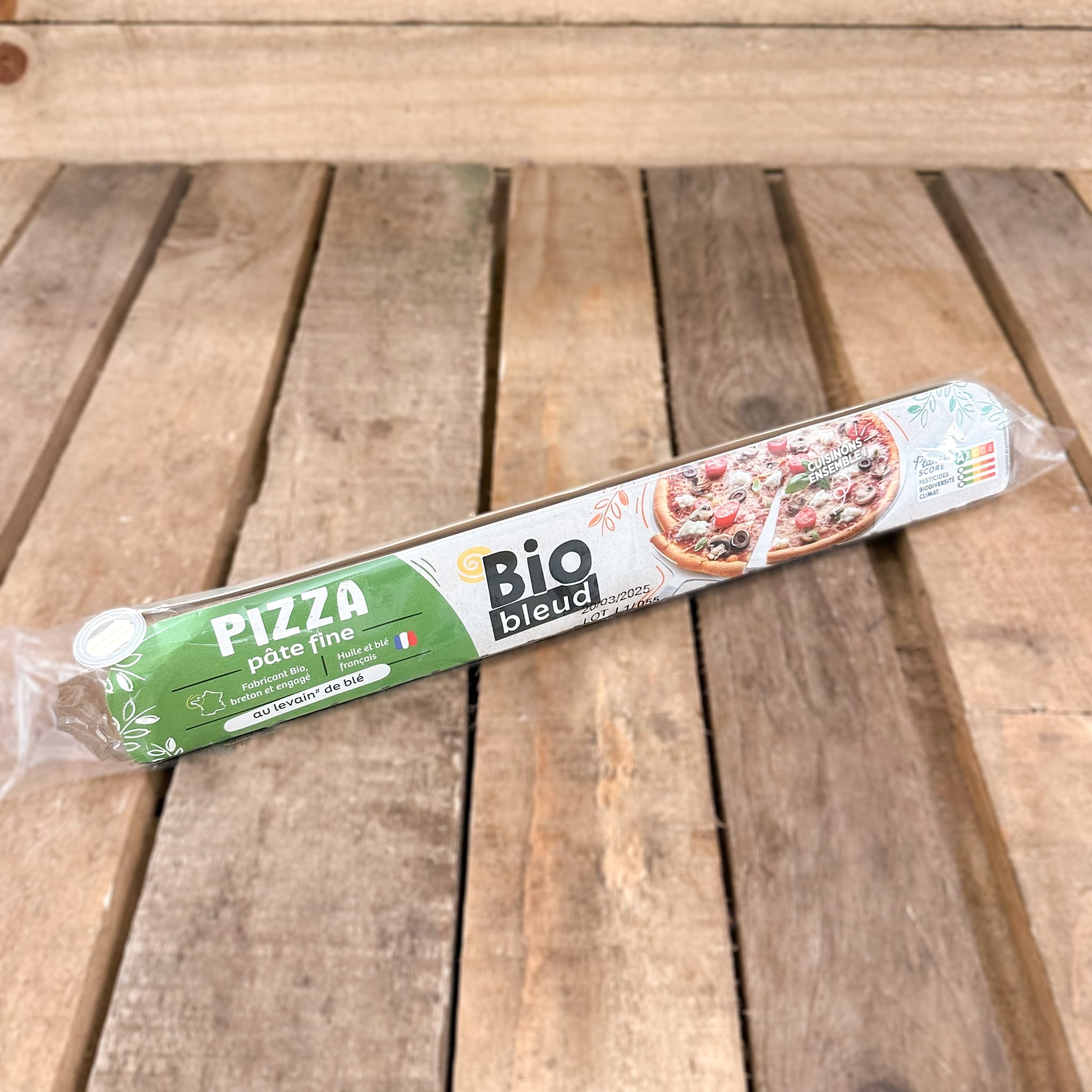 La pâte à pizza au levain ronde Biobleud est prête à dérouler sur sa feuille de papier cuisson. Cette recette permet d’obtenir une pizza à la pâte fine et croustillante après cuisson. La farine, le blé et l’huile de colza bio sont ussis de filières françaises. Cette nouvelle recette garantie sans additif permet une meilleure levée de la pâte dont la texture est plus moelleuse et légèrement aérée.