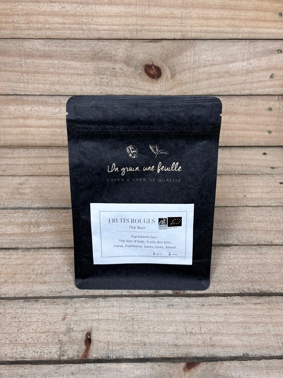 Ingrédients : thé noir d‘Inde, arômes naturels de fraise, framboise et cerise, baies roses, pétales de bleuet.
